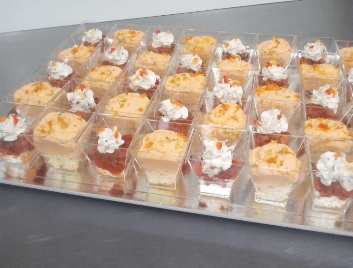 Buffet – DessertsVerrines de poisson frais mariné aux agrumes et mousse de carottes au cuminBuffet – EntréesBuffet – Desserts