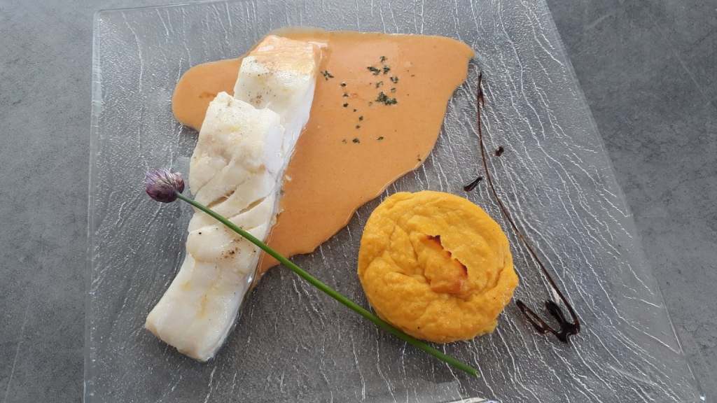Filet d’églefin en écailles de courgettesCharlotte aux tomates confites, courgettes et fromage de chèvrePavé de cabillaud frais sauce écrevisse du lac leman et mousseline carotte / butternut Escalope du P’tit Resto (poulet, fromage de chèvre, tomate et pesto)Dos de cabillaud aux crevettes et aux moules, sauce à l’encre de seiche